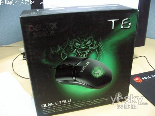 多彩T6游戏鼠标的包装盒以黑色和绿色组成,在包装盒上和鼠标背部都采用了龙的绘画图案,图案细致而精致,整体给人一种神秘感和庄严感,也很有中国特色,相信能吸引许多人的眼球。