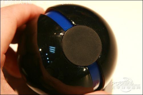 音箱附带了一个线控器,用于调节音量。音箱需要通过mini-USB接口连接至线控器,线材连接略显繁琐。音箱运行时,音乐球中部的蓝色凹槽内会放射出绚丽的灯光。