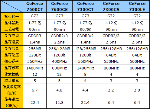 在基于G73核心的三款显示芯片中,GF7300GT是相当成功的,它的成功不仅仅表现在拥有8条像素渲染管线、4个顶点着色单元和产品架构先进、规格强悍、性能出色,并且NVIDIA并未限定7300GT的频率以及显存规格,更没有公版显卡参考标准,任由厂商发挥。因此,市场产生了从499元-699元不同版本的GF7300GT显卡。