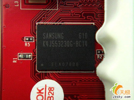 显存部分显卡采用了现代2.5ns的GDDR2显存颗粒,正面共8颗,组成256MB/128bit显存规格,默认频率为450/800MHz。显卡搭配256MB显存具有容量的优势,在大型3D游戏中表现更加出色。供电方面采用了核心与显存分离式的散热设计,为先提供了纯净的电流输出,保证显卡的稳定性。