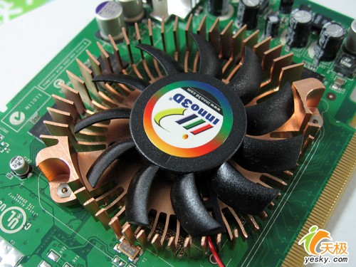 散热部分,翔升爵豹7300GT 256M显卡采用了铜制散热片的设计,配合小扇页的散热风扇达到了不错的散热效果。