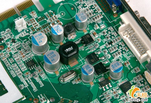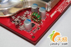 在显卡的供电部分,这款富彩7600GS魔龙版采用的是核心和显存分离式的供电设计。用户所关心的供电电容方面,富彩7600GS魔龙版采用的均是铝壳电容,包括了铝壳点解电容和固态铝壳电容,能够为核心和显存提供充足的动力支持,搭配散热性能强劲的风扇,能够为核心提供进一步的超频空间。