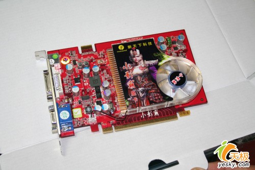 在风扇方面,小影霸GTS3采用的是“天使之翼”豪华散热风扇,硕大的金黄色铝质散热鳍覆盖了显卡核心和显存,七扇叶的高速滚珠风扇风量更大、散热效果更好。采用主流的DVI+VGA+S-VIDEO输出,视频功能相当强大,支持HDTV加速,完全支持H.264, WMV9, Direct X等多种格式的代码转换,通过H.264硬件加速,更可搭建完美的HDTV高清数字平台。