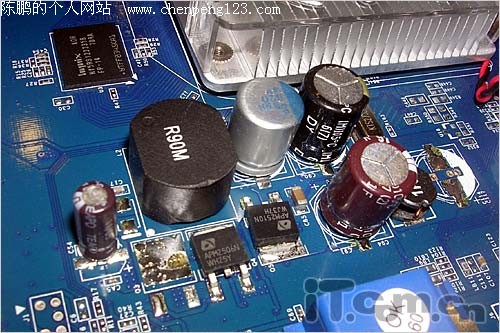 由于采用了非公板的PCB,这款旌宇征服者8500GT 256MB显卡在供电部分的设计也不同于公板产品,采用了显示核心和显存分离独立供电的设计,搭配大量的优质电解电容可以保证显卡工作的稳定性。