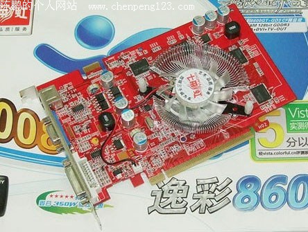 源于 80nm 工艺核心较低的功耗以及较低的发热量,显卡并没有采用夸张的散热器,而是采用了性能较为突出的普通压固式静音散热器,其不仅满足了核心本就不高的散热需求,还同时更静音。供电方面,七彩虹逸彩 8600GT-GD3 CF 黄金版 256M 采用了核心与显存分体式供电设计,元器件采用了高品质环保型铝壳电容的设计,配上两个全封闭的电感,保证了显卡长期稳定的工作。
