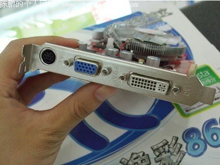 输出部分,显卡使用了当前较为主流的 DVI+VGA+HDTV 接口组合,相比双 DVI 接口易用性、兼容性更好。