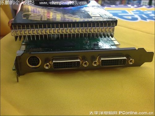 Inno3D iCHiLL 9600GT冰龙版显示输出接口方面比较常规,提供2个DVI接口一个TV-OUT接口。
