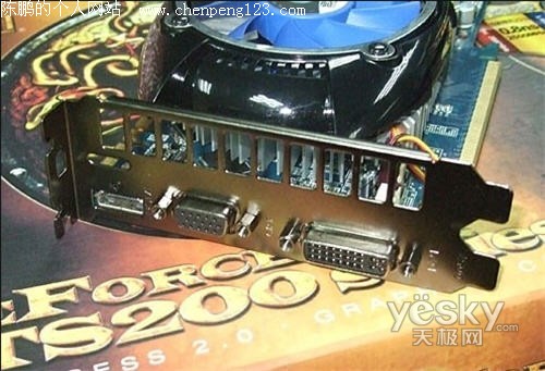 输出部分,影驰 GTS250上将版提供了VGA+DVI+HDMI输出接口,支持各种类型的双头输出模式,可以实现高达2560x1600的高分辨率输出。由于该显卡采用了HDMI输出,方便用户组建高清视频系统。