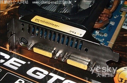 输出部分,索泰 GTS250-512D3首发纪念版提供了双DVI+TV-OUT输出接口,支持各种类型的双头输出模式,可以实现高达2560x1600的高分辨率输出。