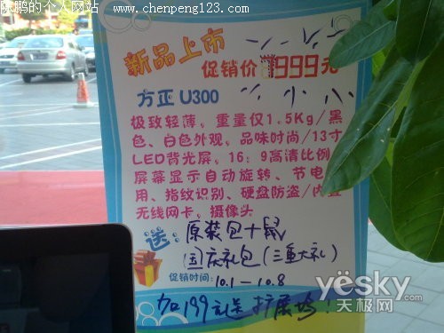 十一当天方正新品U300-SU27AQ笔记本到货店面,该机采用了流线型设计,较轻的工程塑料模材质,亮丽的同时机身极致轻薄。配置方面则采用了奔腾ULV SU270处理器、2GB内存、120GB硬盘性能上表现不俗,并且还配备了无线网卡、蓝牙、摄像头、指纹识别以及多功能触控板等。目前,这款产品市场报价7999元,随机附送原装包、鼠,在10.1-10.8日可获赠国庆礼包,并且加199元就可获得扩散坞一个(扩展接口:(1×VGA、1×RJ45(千兆)、2×USB2.0)),喜欢的朋友不妨到方正专卖店具体了解一下。