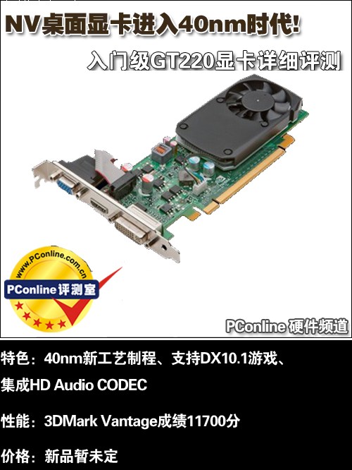 NV在新工艺上向来要慢AMD半步,这次也不例外。我们知道AMD将在本周发布基于40nm制造工艺的RV870核心,并首先推出HD5870和HD5850两款高端显卡,而NV的40nm高端显卡估计要到11月才能正式发布。相比高端显卡的延迟,NV在低端显卡上的步骤还算与AMD较接近,最近网上一直有GT216核心的各种消息,今天我们就拿到了一款基于GT216核心设计的40nm入门级显卡GT220,接下来我们就将这款显卡的详细评测送给网友。