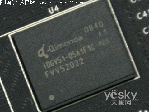 显存方面,景钛HD486X-YDF采用GDDR5显存颗粒组成的512MB/256bit的显存规格。显存芯片上的-40X表示其极限频率在4000MHz左右,也就是说讯景这款显卡有相当大的超频潜力可供挖掘。
