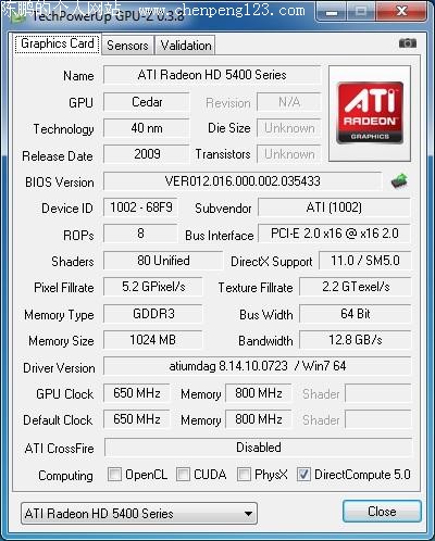 GPU-Z 0.3.8对于ATI Radeon HD 5450显卡比较完整
