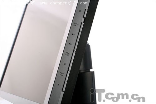 明基FP241W的调节按键和标识都被安排在机身的右侧面,对不熟悉的用户来说显得有点不便,不过比起置于后方则方便得多,同时又顾及了显示器前面板的美观,况且我们也不需要经常对显示器进行调节。