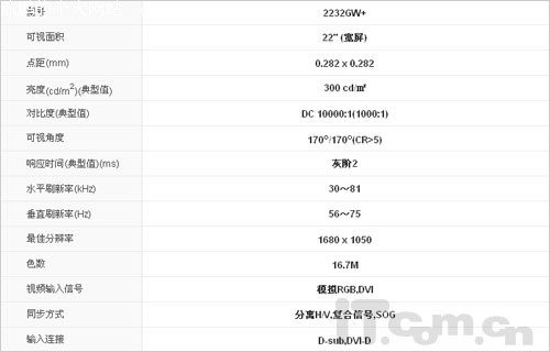 2232GW+的参数在22英寸中属于顶级,其DVI支持HDCP