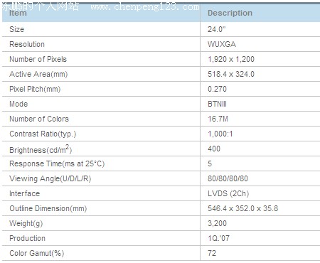 当然,谈到液晶就不得不谈液晶的重要组成部分:面板。对于中大屏液晶而言,所采用的面板类型以及性能是非常重要的,这直接关系着产品的表现力。一直以来,大屏液晶面板都被认为是MV、IPS类面板的自留地,可视角度与色彩表现稍逊一筹的TN类面板极少涉足这一领域。但这种情况在半年度得到了改观。首先大屏TN面板大都提供了16.7M的色彩显示,色彩补偿技术也在不断提升,为TN面板打入大屏市场提供先觉条件。其次,对于面板和显示器厂商而言,也迫切的希望增加利润增长率,不断的推进大屏液晶的普及,然而高规格的VA类面板却很难达到“普及”的目标,只有价格更为低廉的TN才是正途。