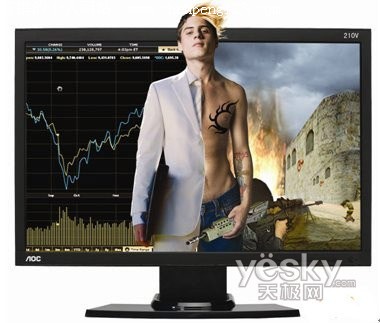 AOC 210V采用了AOC宽屏LCD简约时尚的风格,钢琴漆工艺的宽大底座搭配窄边框的设计,整体显得时尚大方。OSD按键设计在了面板的右下角,操作比较方便。AOC 210V还拥有AOC独特的Eco Mode调节功能,内含了标准、运动、电影、游戏、网络及文本6种情景模式。