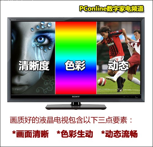其实对于菜鸟们而言,若要不被销售的花言巧语所迷惑,最关键的就是先明确自己买一台液晶电视是用来干嘛的。说到这里,很多朋友就会脱口而出“用来看的”。既然我们的目标已经明确,一切事情就变得简单轻松多了。看电视最基本的要求就是画质好,也就意味着画面清晰、色彩生动、动态流畅,做到这三点,就是一台好的液晶电视。