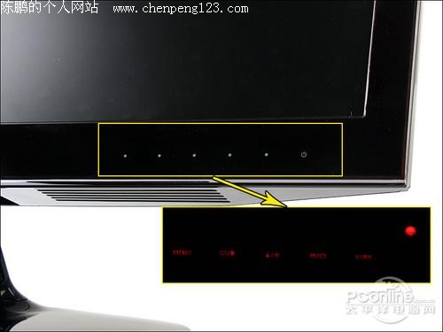 显示器的OSD按键分布在机身的右侧,采用了触控式设计,显得更加潮流和时尚,只要用户轻轻触到OSD位置,OSD的LED灯便会亮起,这样的设计对于夜间操作是十分方便的。