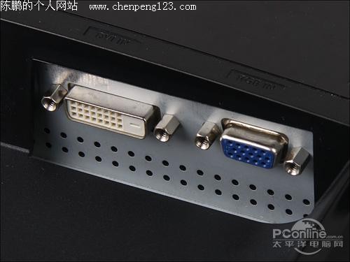 产品视频接口提供了主流的VGA+DVI的视频接口设计,没有搭配HDMI原因一方面为了控制成本,另一方面是22寸宽屏不支持全高清(1920×1080)分辨率。