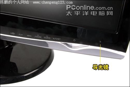 触控式的OSD按键位于产品右下,同时产品的导光镜也位于产品右下,导光镜的作用的是将外界光线传导至内部的感光元件上,用以实现自动亮起功能中的外界感光部分。