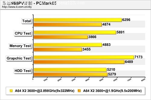 昂达N68PV同样具备良好的超频能力,在《599配HDMI子卡 昂达N68PV超频测试》中,该主板能够将65nm版的X2 3600+超频至322MHz外频。