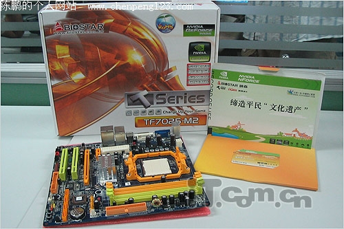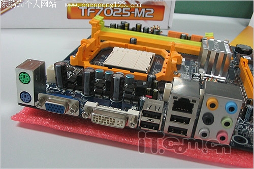 映泰TF7050-M2采用M-ATX板形设计,搭载C68S单芯片,内部集成GF7025显示核心以及提供NF630A南桥功能支持;提供最高1GHz的前端总线设计,最全系列的AM2架构AMD处理器提供支持。显示核心部分默认频率设定位375MHz ,而玩家可以通过BIOS对其进行400MHz到1GHz的频率调节,完全可以轻松超越公版7050;对于一款集成平台显示核心而言,拥有如此的峰值频率以及调节跨度相当惊人;不过相比搭载7050的C68GV,其并没有提供HDMI支持。