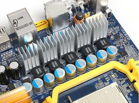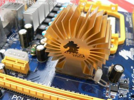散热上, 570X 主板采用的是立体设计北桥散热芯片,跟前作 HI01 相比,没有加载风扇,从主动散热改为被动散热,不过 570X 的发热量并不高,该散热片能迅速带走热量。