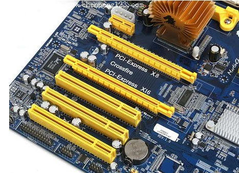 另外主板提供对 ATI CrossFire 技术的支持,分别提供一条 PCI-E x16 与 PCI-E x8 插槽,使用单卡的玩家可以将显卡插于全速的 PCI-E x16 插槽中,当同时插入两块相同型号的 ATI 显示卡时,通过 BIOS 设置便可以开启 CrossFire 模式, 3D 性能提升幅度在 30%-50% 之间,适合那些发烧级游戏玩家选用。额外的辅助 4PIN 供电接口,对采用 CrossFire 双卡模式时提供充足的电力能源,发挥最强劲的 3D 效能。