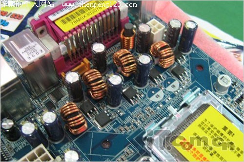 在供电方面主板采用了稳定的4相供电设计。为了控制成本,华擎这款主板没有采用固态电容。内存方面,主板配备4个内存插槽,支持DDR2 800/667/533的双通道内存,最大内存容量为8GB。