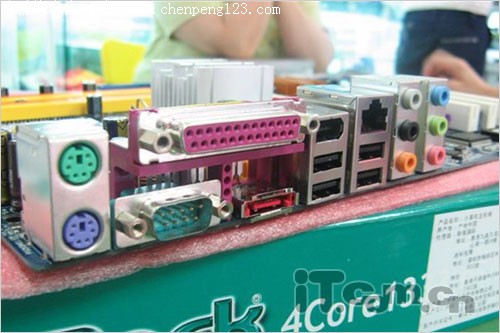 这款主板在IO接口上为我们看到它提供了eSATA接口,这是一种未来接替USB接口的新产品,为用户的数据传输提供了很大的便利。还提供了千兆网卡和1394接口,非常实用。在超频设置方面,这款主板还支持华擎的Hybrid Booster CPU频率无段调节和ASRock U-COP CPU过热保护技术。