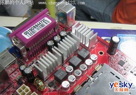 供电方面,微星 945GCM5-F采用了三相供电设计,用料比较扎实,选用了高品质的固态电容加上全封闭式电感和高品质MOS管的配合,为系统的稳定运行奠定了坚实的基础。