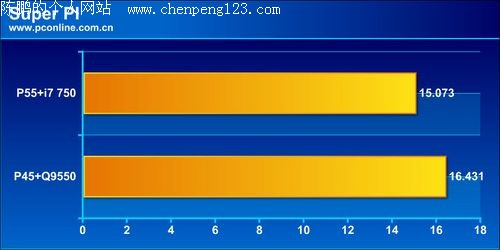 在Super PI测试项目中,可以看到P55平台上的i5 750处理器的表现更加优秀,运算效率上更高,不仅是架构更优秀,i5处理器上的智能超频也带来了一定的性能提升。