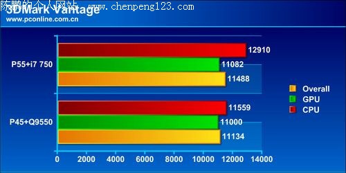 在3DMark Vantage测试中,两个平台上的性能表现除了CPU性能有一些不同以外,GPU性能和整体性能基本相同。