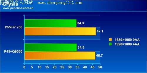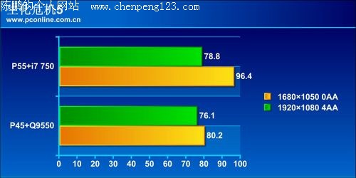 在生化危机5游戏中,1680×1050分辨率下,P55平台大幅领先于P45平台,在高分辨率情况下也有一定的优势。
