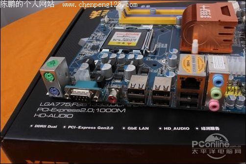 扩展部分,翔升凌志P43T主板提供了1条PCI-E x16显卡插槽,提供了2个PCI-E x1插槽和2条PCI插槽,扩展能力不错。