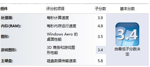 针对联想ThinkPad Edge的整机性能,我们首先选择了Window 7中自带的体验索引测试。在测试中,由于集成显示芯片的限制,基本分数仅为3.4,但是这并不会影响我们的实际应用。其中值得一提的是,该机的主硬盘分数达到了5.8的高分,表现出了ThinkPad商务机型的最终本质!