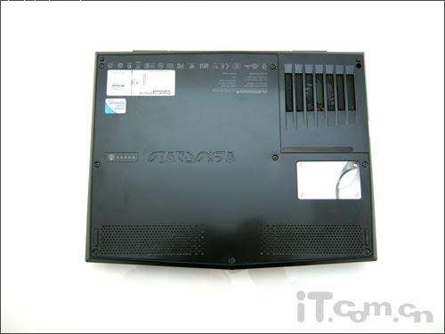 至于笔记本电脑的底部,M11x同样惊人。底部面板大部分都很平整光滑,除了立体扬声器那些栅格(可定制名牌音箱),还有风扇通风口。如果你有兴趣给你的M11x升级配置,你会高兴地知道,所有用户可维修的部件都可在底部各接入面板下找到。要访问CPU、显卡或冷却风扇要复杂得多,不过大多数消费者真的不需要去碰那些玩意。
