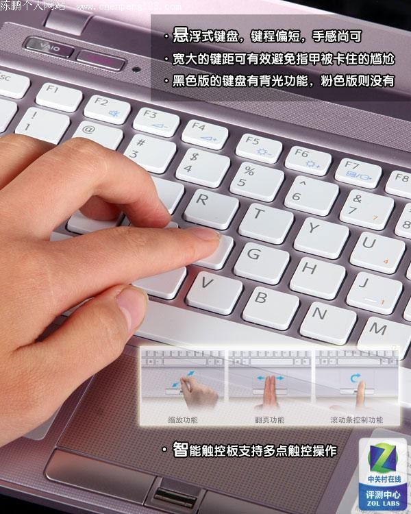 索尼的悬浮式键盘,又称孤岛式键盘、巧克力键盘,其核心理念在于键与键之间的距离较远,它的好处主要有两个,一是减少误操作,二是避免女士的长时间卡到键盘缝隙里。