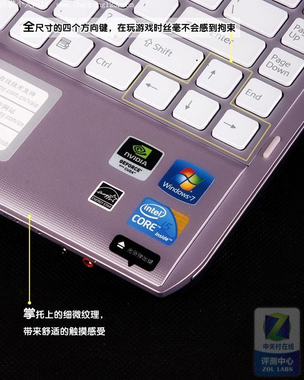 S128乍一看只是漂亮而已,但用时间长了就会感到许多细节带来的舒适,比如全尺寸的方向键,掌托上的细腻颗粒,下沉式转轴等等。请看下图: