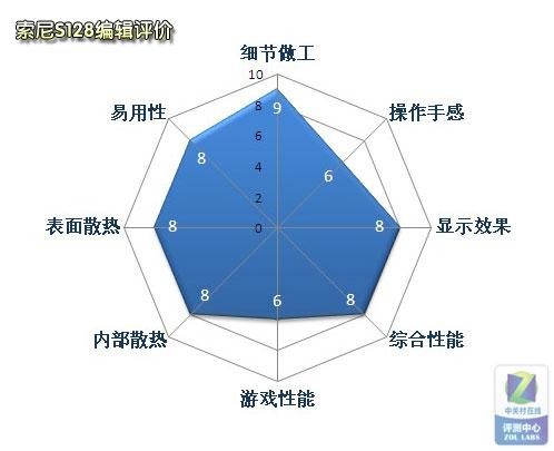 细节做工:9分。金属外壳显著提升了S128的整体档次,同时也确实增强了它的耐用性、散热性和舒适度。各接缝处连接很紧密,做工扎实。屏幕转轴阻尼恰到好处,单手即可掀开屏幕,而且丝毫没有松动。