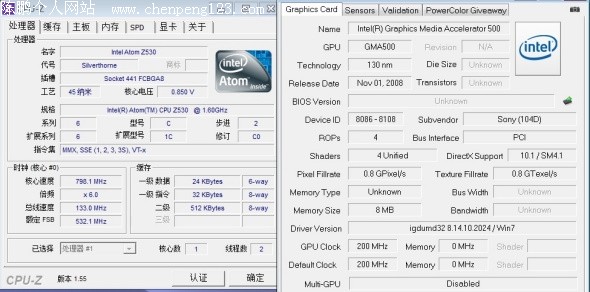 Atom Z530中央处理器及Intel Graphics Media Accelerator 500显示芯片