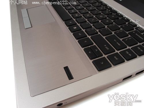 惠普ProBook 5330m右下角有指纹识别装置,可以比较安全地保护笔记本的数据,指纹识别是目前商务笔记本上比较靠谱的安全保护装置。