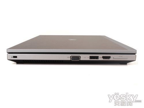 在惠普ProBook 5330m的机身左侧,由前往后依次分布着多合一读卡器插槽、HDMI高清接口、eSATA/USB 2.0复用接口、VGA视频接口和笔记本锁孔。另外,笔记本的散热口也设计在了机身左侧,不影响右手操作鼠标时的感受。