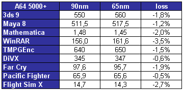 测试结果都存在着差异。在Pacific Fighters中,65nm处理器的性能只下降了0.5%,但是在WinRAR的测试中却为%。这样换算下来性能平均下降了1.7%。如果照这种情况来看,我们这款65nm处理器则不应该称作5000+,而应该被称作 4950+。