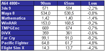性能下降幅度在0.6% 和 9.2%之间,平均值为6%。从测试结果来看,新版4800+处理器也许被应该称作 4700+ 或者4600+......