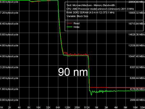 在咨询了AMD公司之后我们了解到该公司正在计划在未来在新处理器上配备更高容量的二级缓存,并且将会对二级缓存进行修正。但是这个解释并不能令人信服,因为AMD之前推出的90nm处理器就已经配备了1M容量的二级缓存。考虑到目前65nm处理器的二级缓存容量为512K,因此我们很难相信AMD是否能够在将来把二级缓存的容量提升至2M。此外从目前的趋势来看,AMD新架构的处理器将会同样配备2X512K二级缓存,不过新架构处理器将会增强新的三级缓存。
