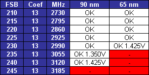 在超频测试中,我们将两块处理器的FSB都增加了5MHZ。处理器的默认电压分别为1.3V( 90nm)和 1.35V ( 65nm),为了进行超频我们将电压调高了0.025V。散热器我们仍然使用的是原包装附带的散热器。