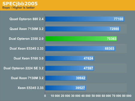 SPECjbb需要出色的整数处理以及出色的内存性能,那么Barcelona会为我们带来什么样的表现呢?