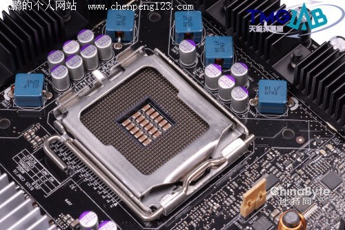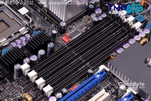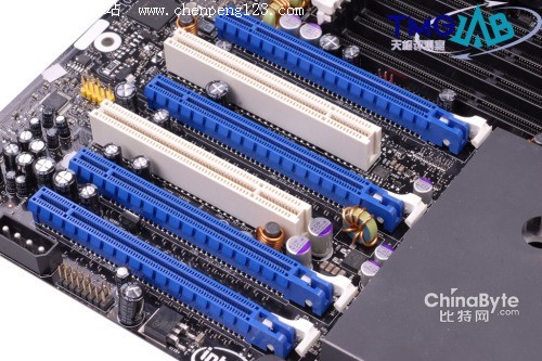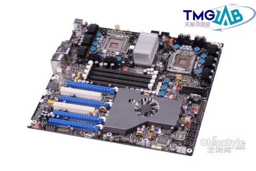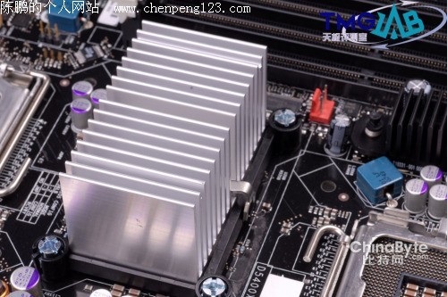 北桥芯片位于两个CPU插槽之间,采用大型铝制散热片的被动散热方案,散热效果相当不错,在我们的整个测试过程中,散热片的温度都不太高。